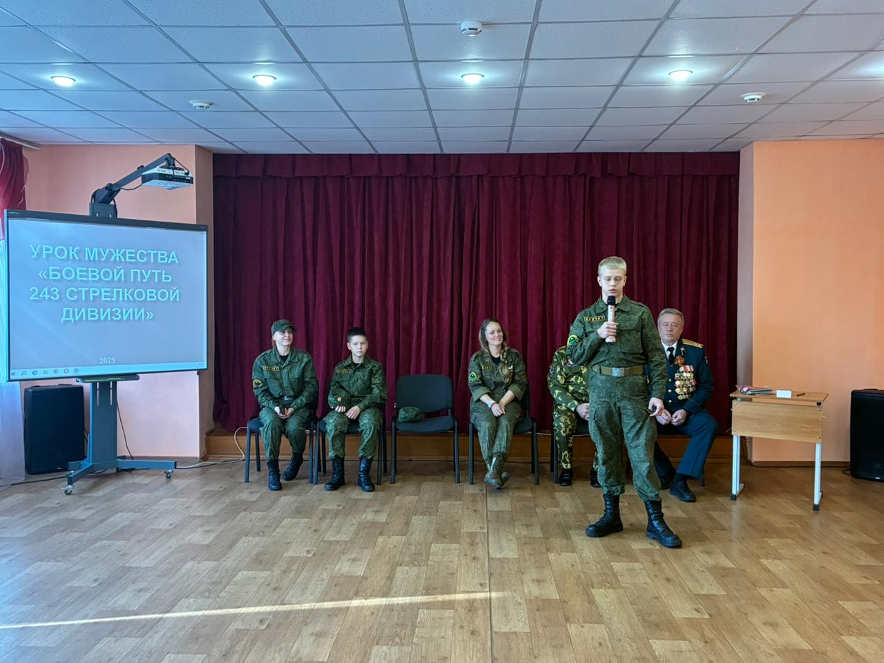 В Центре внешкольной работы членами поискового отряда «Кречет» был проведен Урок мужества на тему «Боевой путь 243-й стрелковой дивизии». Ученики из МОУ «Килачевская СОШ», поисковый отряд «Рубеж» – МОУ «Зайковская СОШ № 1» и юнармейцы военно-патриотического клуба «Беркут» – МАОУ Зайковская СОШ № 2 узнали о подвигах солдат 243 дивизии, которые сражались на фронтах Великой Отечественной войны.